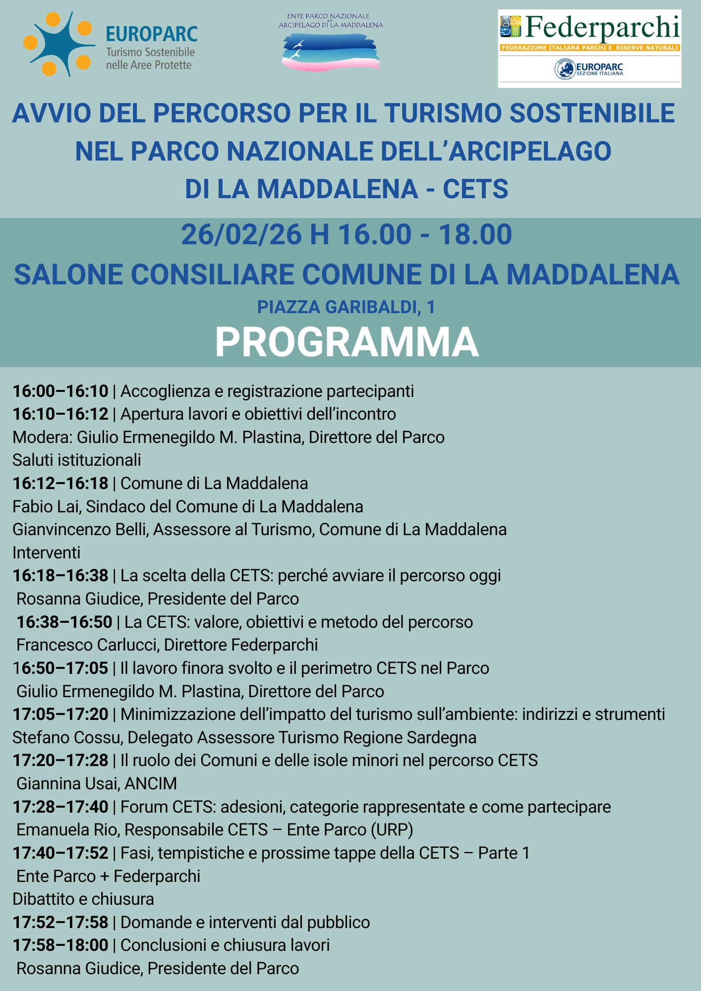 Rilanciamo l’appuntamento del 1° Forum della Carta Europea del Turismo Sostenibile (CETS), che segna l’avvio del percorso per il turismo sostenibile nel Parco Nazionale Arcipelago di La Maddalena.