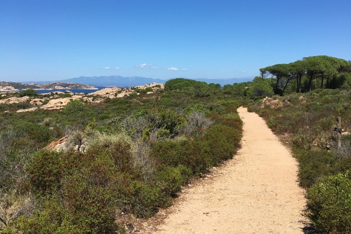 La zona è ora obiettivo di rimboschimento con specie arboree autoctone da Parte del Parco Nazionale dell'Arcipelago di La Maddalena.  Al termine del pianoro dove, tra le rocce basse, incantevoli pratini si ricoprono in primavera da un manto di crocus, romulee, pratoline, genzianacee e  orchidee per lasciare il posto, d’estate al puleggio (Mentha pulegium) dal fresco e forte aroma, il sentiero si restringe e, costeggiando un imponente contrafforte granitico dalle fogge sinuose, degrada fino al mare. Ci si affaccia alla profonda cala con l’acqua molto bassa, facendo qualche passo sulle rocce per evitare di attraversare il fitto giuncheto.
